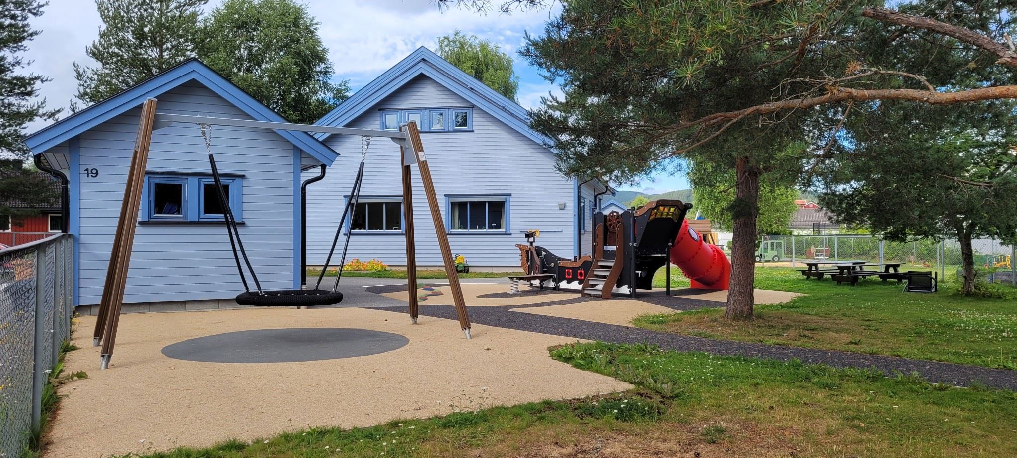 Vi er en to-avdelingsbarnehage, som ligger sentrumsnært til på Sokna I hverdagen bruker vi gjerne nærområdet vårt, enten det er i Tusenmeteren i skogen, gapahuken eller uteområdet til skolen. Vi er rundt for å se på dyrene på gårdene eller i Sokna sentrum, med blandt annet egen brannstasjon og toget som suser forbi. Det skjer mye og i løpet av året, får vi med oss det meste. Når vi ikke er på turer, har vi en flott barnehage med rikelig av boltringsplass både inne og ute. Uteområdet vårt fikk en oppgradering i 2021, og inneholder blandt annet en sjørøverskute, lekestativer og husker av flere slag.